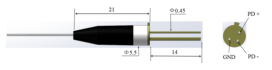分光探测器(TAP PD)内部采用高性能 InGaAs/InP PIN光电二极管封装。基于其特殊的光学设计, 产品具有高响应度, 低暗电流和可靠性高的优点。 由于其紧凑的结构和微小的体积, 易于集成在高密度的光纤通信系统中。