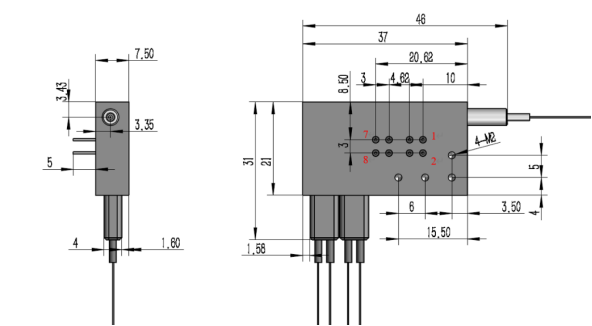 说 明:1×4高速磁光开关的最大电源电压为DC7V,建议使用6V电源。
