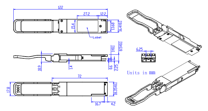 The product is designed with form factor, optical/electrical connection and digital diagnostic interface according to the QSFP28 Multi-Source Agreement (MSA) and compliant to IEEE 802.3bm.