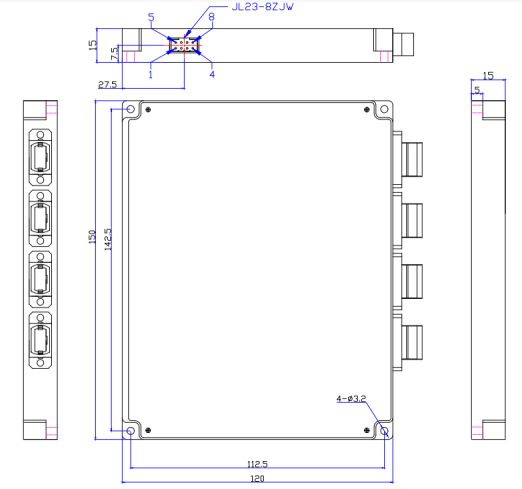 安装孔位置结构厚度5mm,四个固定孔,做通孔,大小M3