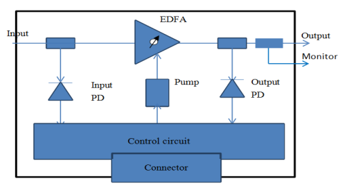This document specifies the requirements of a DWDM C-band amplifier. The amplifier modules can be operated at constant gain (Automatic Gain Control AGC), constant output power (Automatic Power Control, APC). There are isolators at input and output port. Integrated VOA can be automatically adjusted to achieve smooth gain spectrum. Optical supervisory channel (OSC) is optional function integrated in the module, it can be dropped or added.