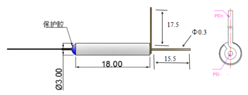 PD探测器内部采用高性能 InGaAs/InP PIN光电二极管封装。基于其特殊的光学设计, 产品具有高响应度, 低暗电流和可靠性高的优点。 由于其紧凑的结构和微小的体积, 易于集成在高密度的光纤通信系统中。