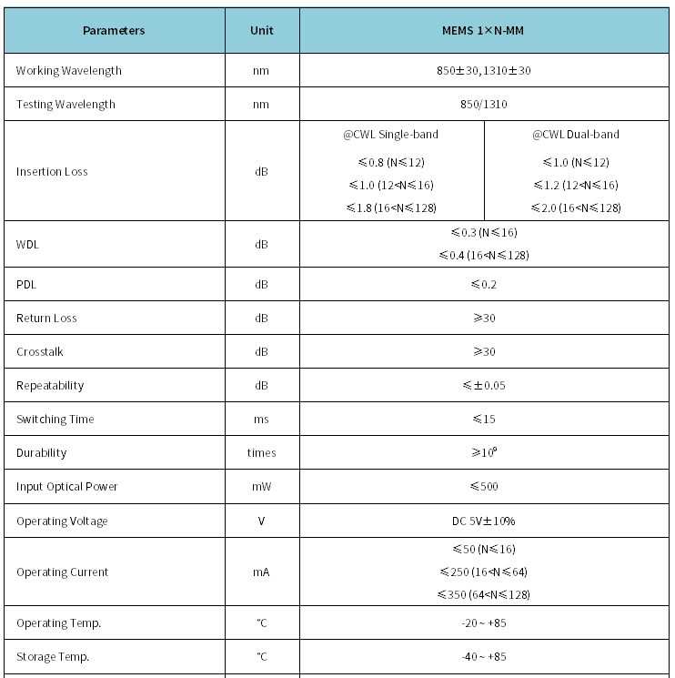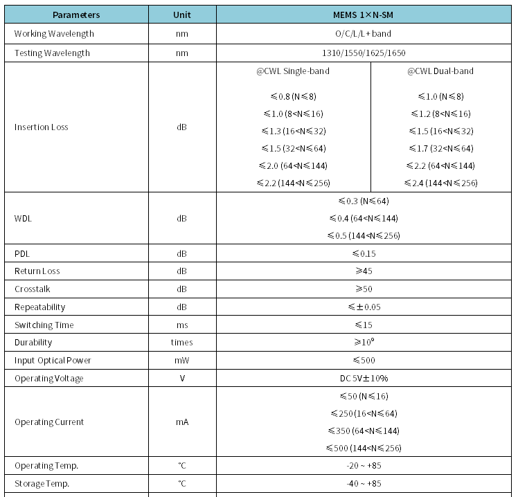 85:850nm 13:1310nm 14:1490 nm 15:1550 nm 162:1625 nm 165:1650 nm 13/15: 1310/1550 nm X:other |