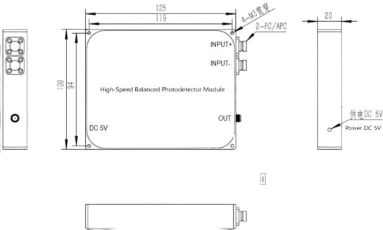 These series optical detection module integrates two matched analog PIN detectors with high bandwidth and high linearity and a low-noise broadband transimpedance amplifier. It has the characteristics of high gain, high sensitivity, optional coupling mode and high common-mode rejection ratio, which can effectively reduce the common-mode noise of input light and improve the signal-to-noise ratio of the system. The power supply of the module is positive 12 V, the input of the module is a common single-mode optical fiber, the error of the length of the optical fiber is less than 1 mm, and the electrical signal is output from the SMA/2.92 mm port. The module is mainly used in the fields of coherent optical communication, laser radar, optical fiber coherent tomography, optical fiber sensing system and the like.